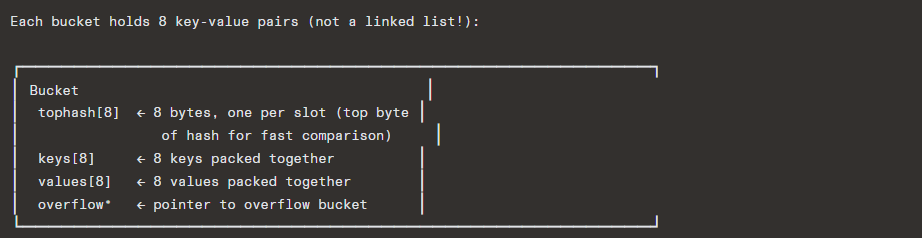 2. Compare tophash[i] for each of 8 slots (SIMD-friendly!)